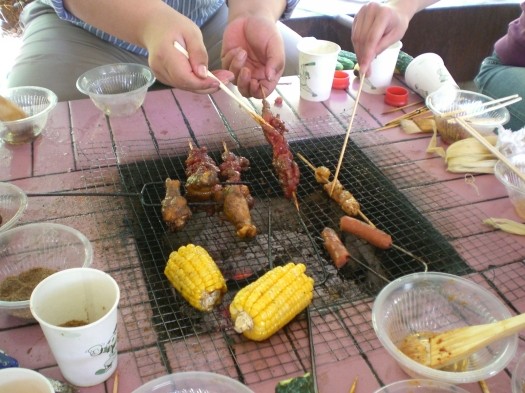 來個合照吧 | 來,想吃的,自己動手 | 烤玉米好香啊 |